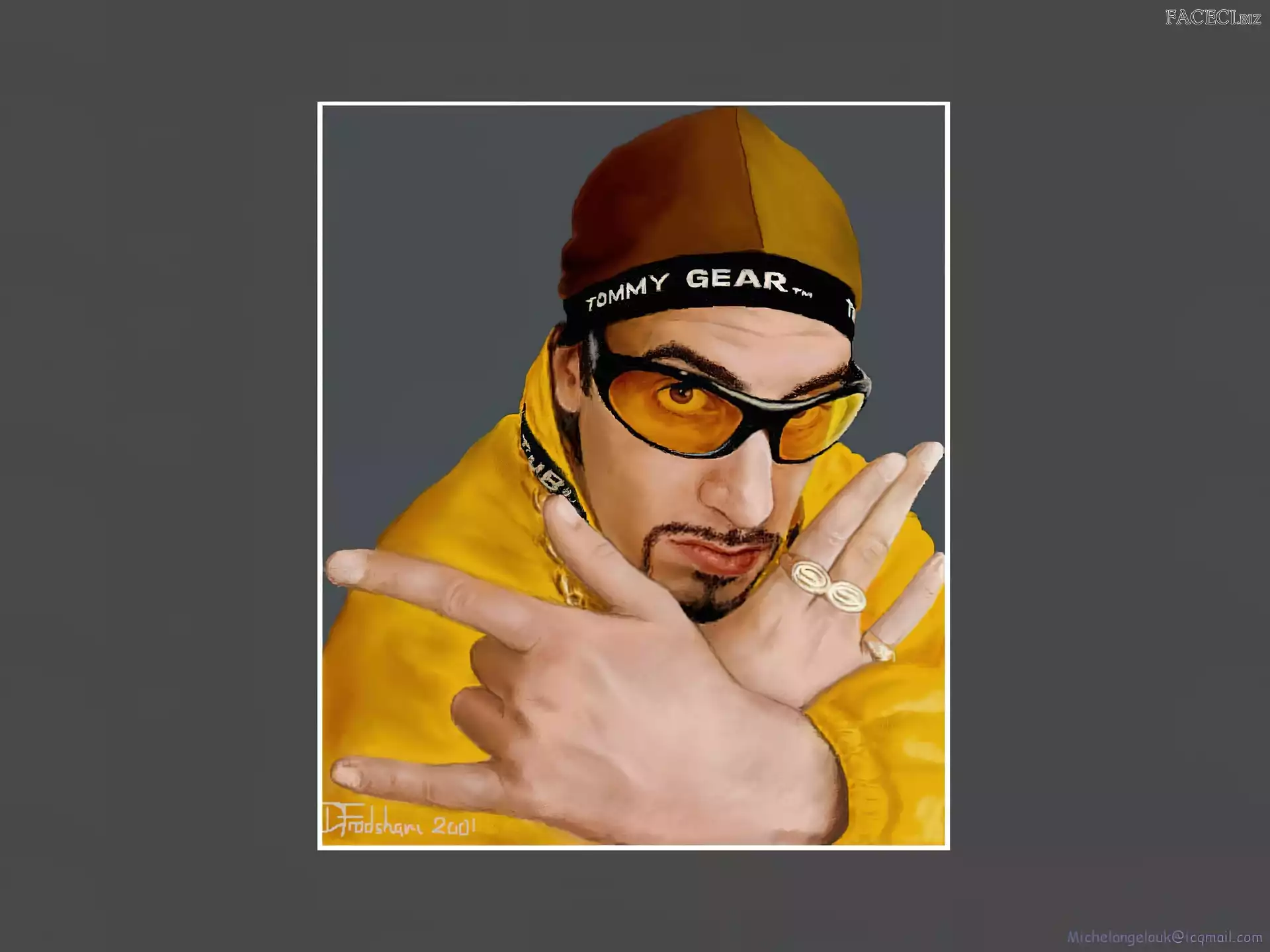 Sasha Baron Cohen, niebieski dres Sasha Baron Cohen, zdjęcia Sasha Baron Cohen, gruby łańcuch Sasha Baron Cohen, ali g Sasha Baron Cohen, borat złoty strój, Sasha Baron Cohen, okulary Sasha Baron Cohen, żółty strój